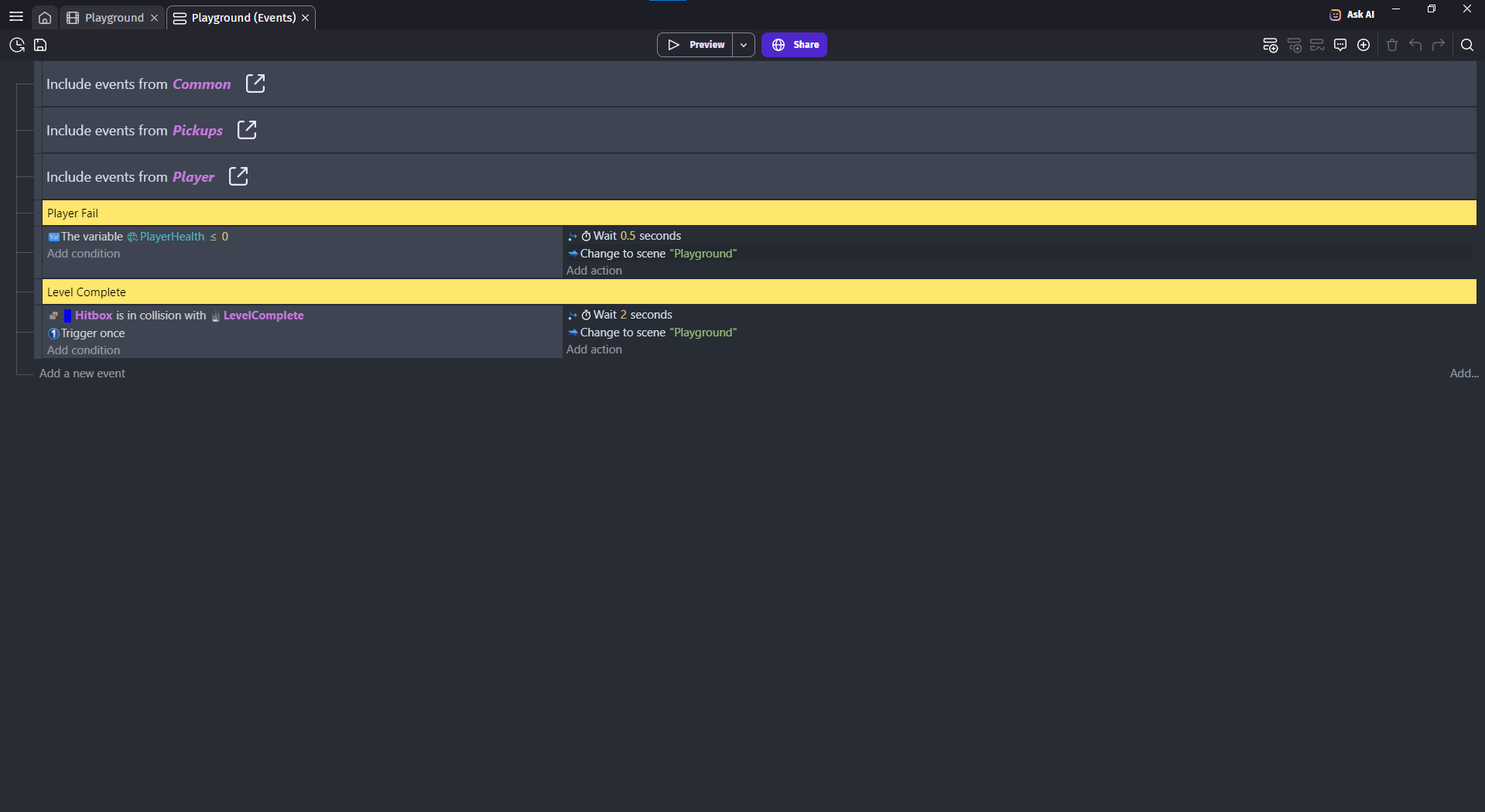 - Easy to understand event logic