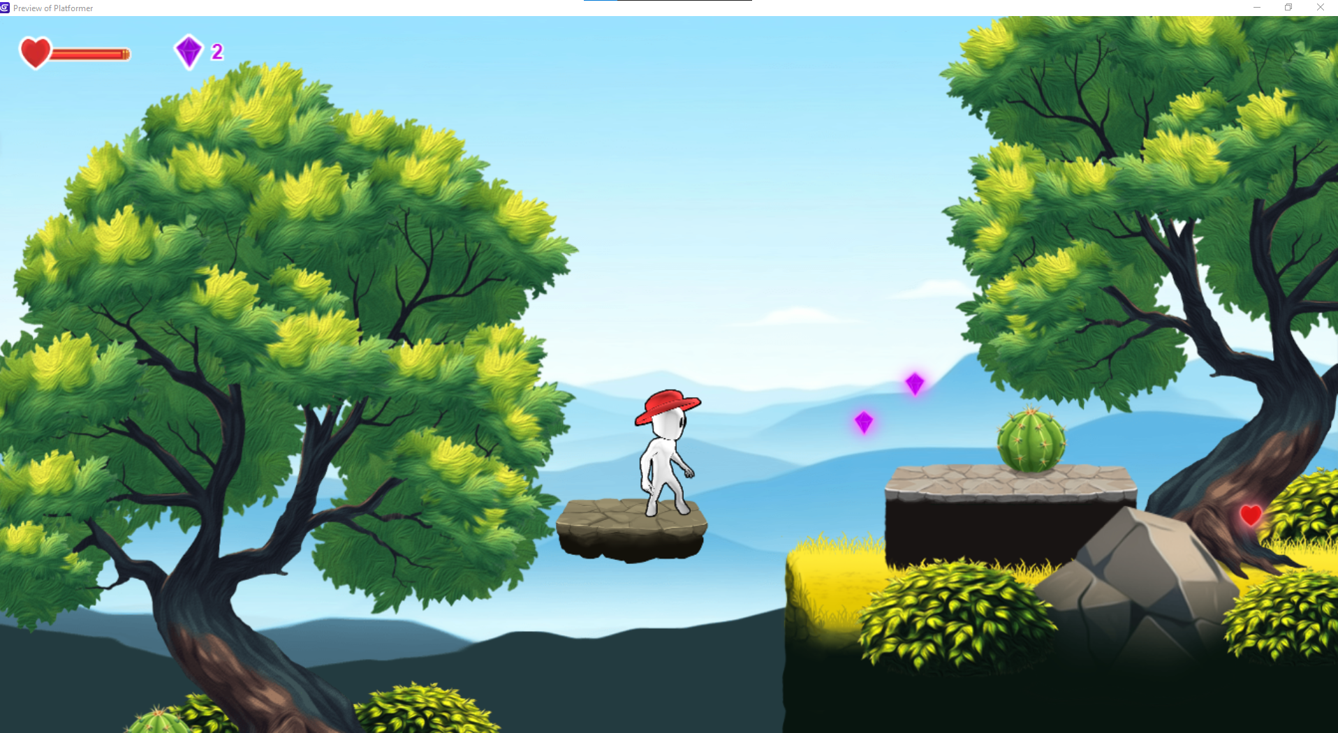 A beginner friendly 2D platformer template made with GDevelop. Includes polished player movement, collectibles, health system, sounds, and a clean HUD. Perfect for learning and rapid prototyping.